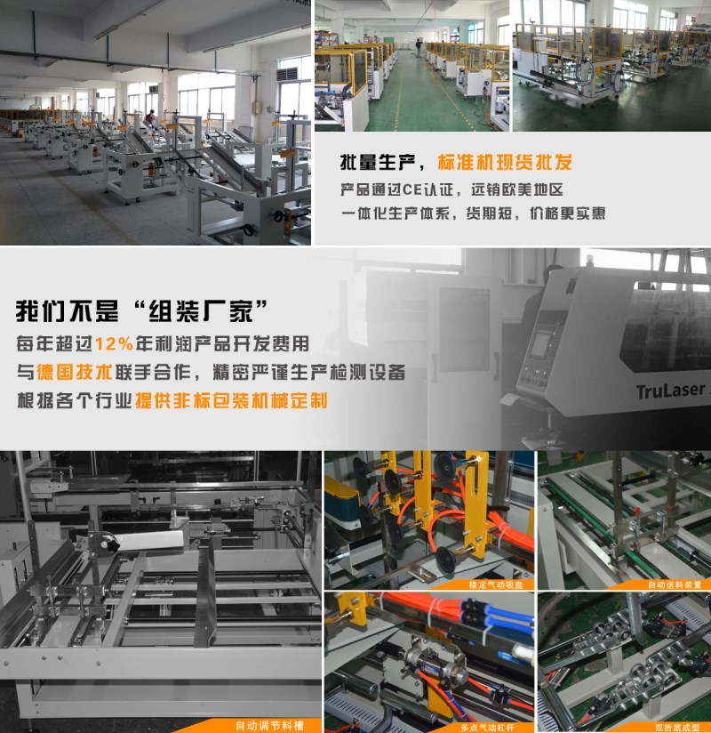 封底機合理化設計,同步吸取成型,摺底與封底一次同步成型;體積輕巧,機件性能精密耐用,運作過程無振動,運轉穩固壽命長,效率高