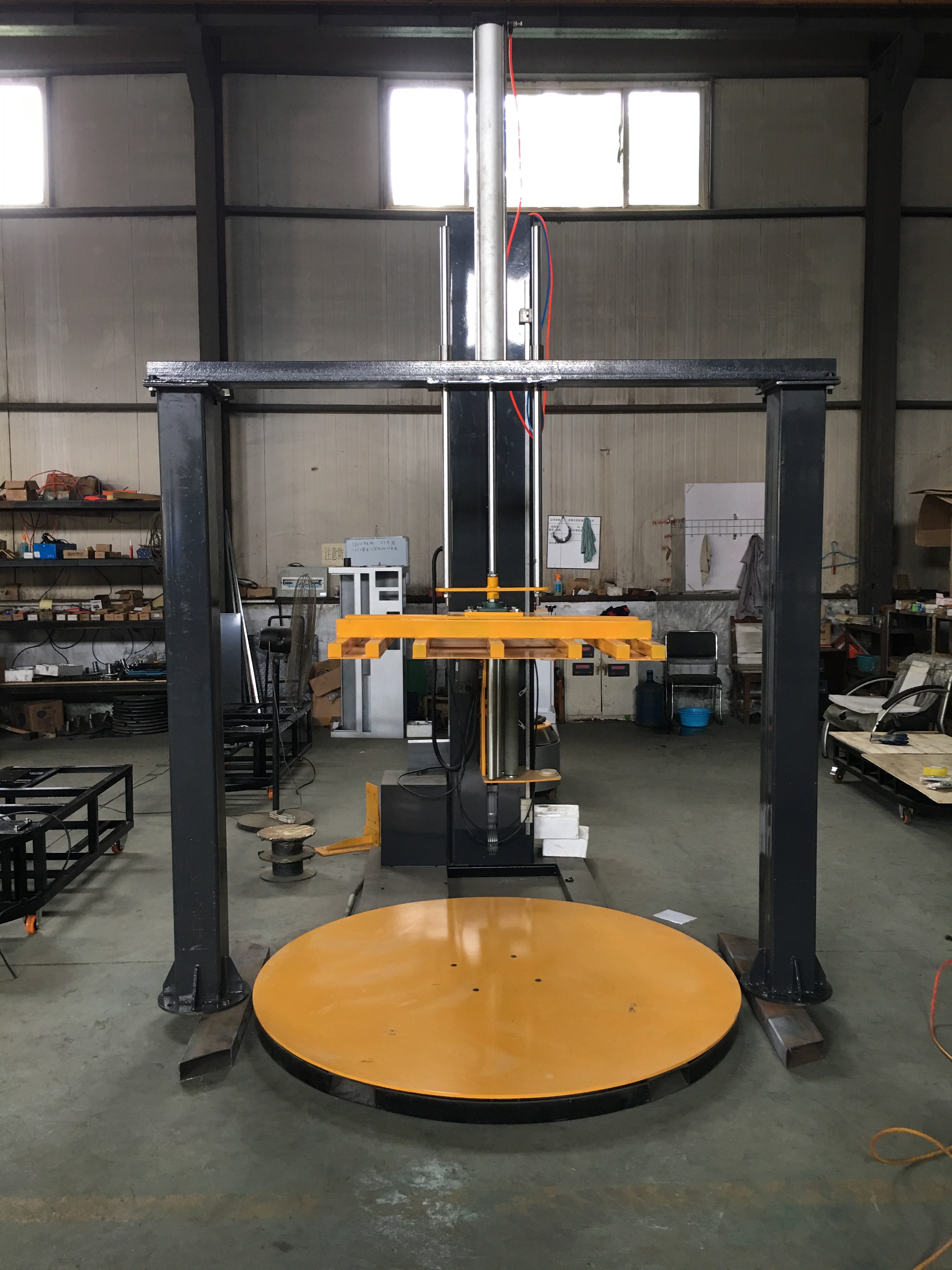 1、貨物比較散。所謂的貨物比較散,最典型的就是一個托盤上面落很多產品,在轉盤轉動或者纏繞的過程中貨物容易散落,這種情況下就需要選擇壓頂纏繞機。